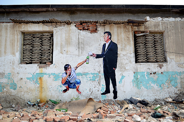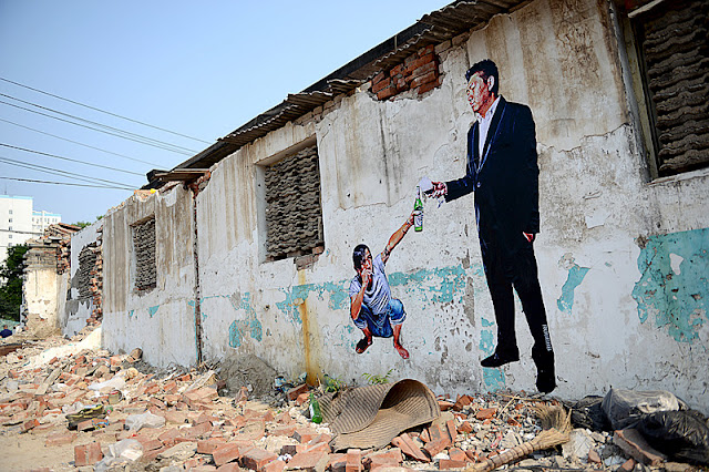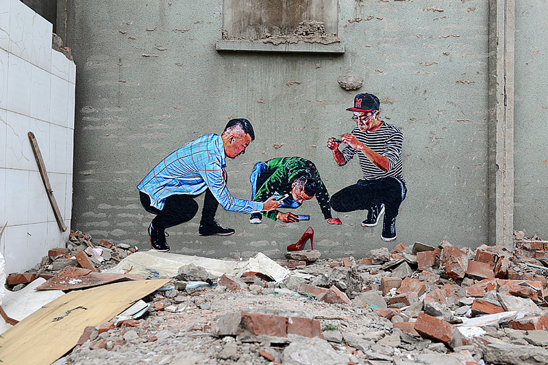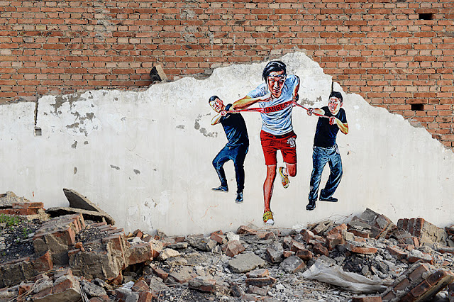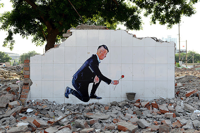 Chinese artist ROBBBB is based in Beijing, China and he spends most of his free time wheat pasting his powerful pieces in various district of the city.