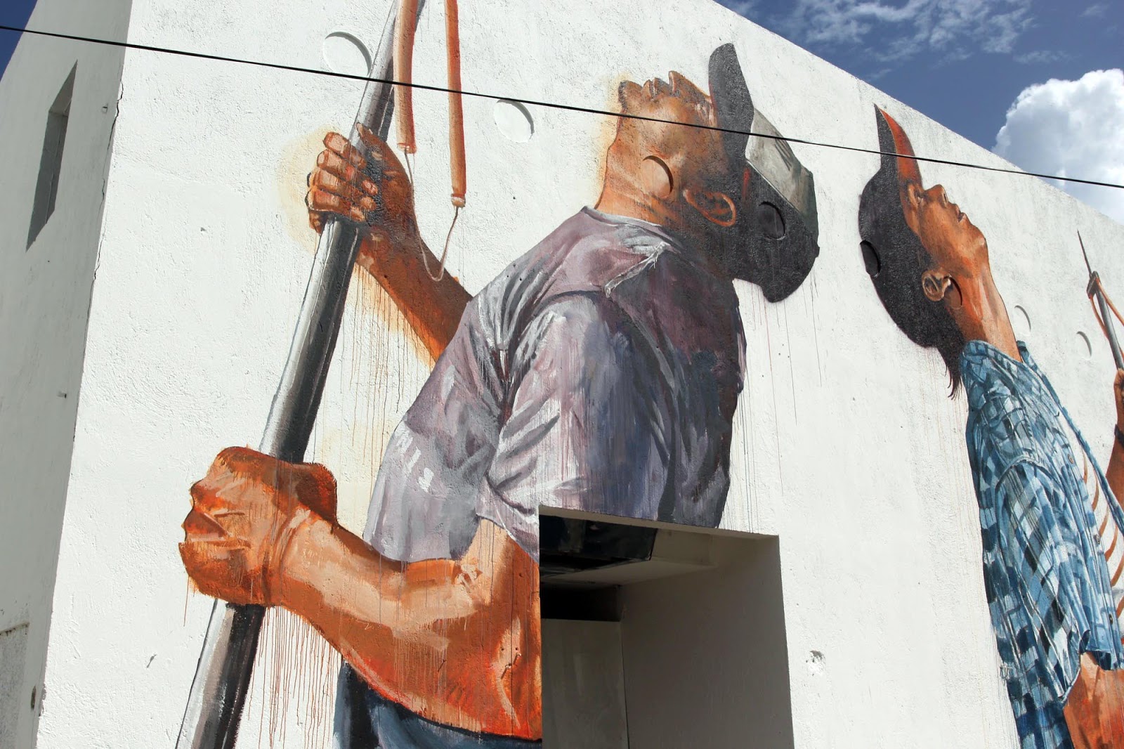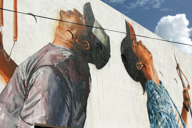 This mural pays homage to the social realism of the Mexican muralist movement and the Mexican fighting spirit in a modern environmental context.