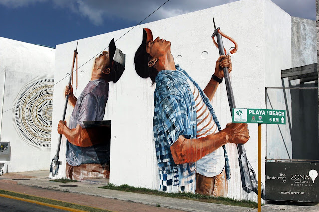 After bringing you some exclusive images a few days ago, Fintan Magee has now wrapped up his piece for PangeaSeed and SeaWalls in Cozumel, Mexico.