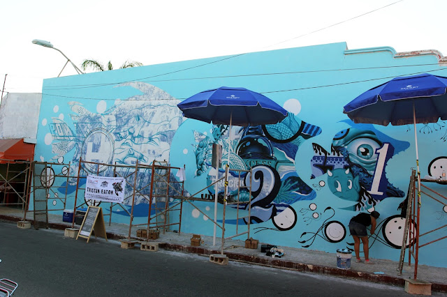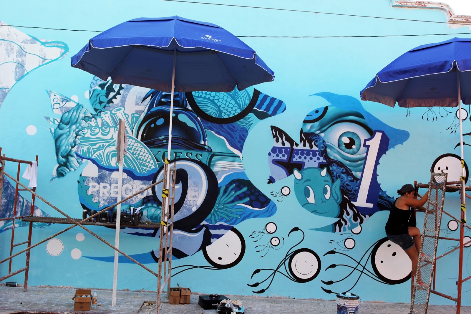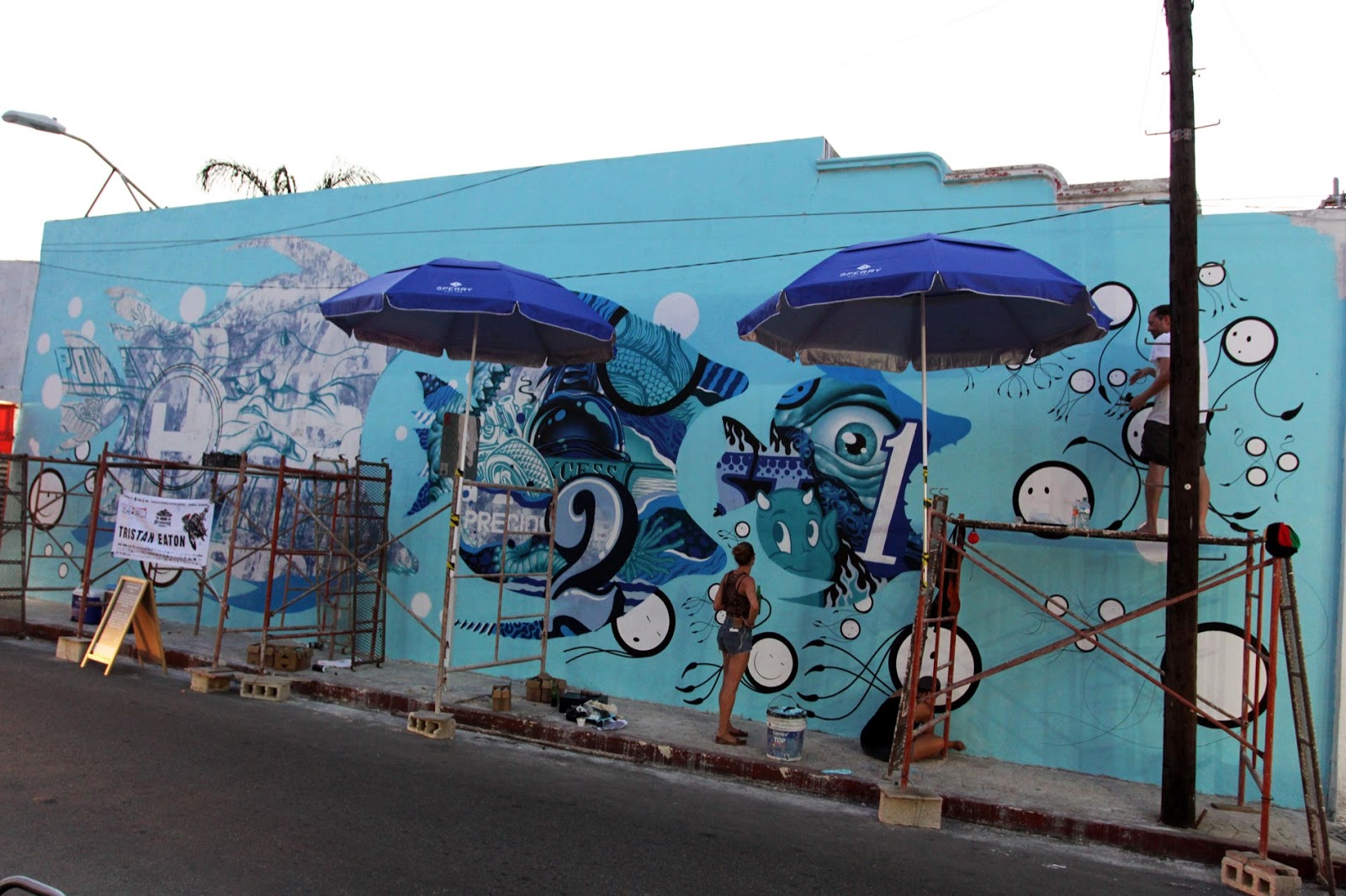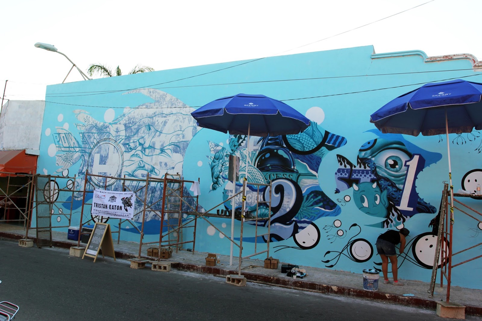Years in the making, a collaboration in between Tristan Eaton and The London Police is finally taking place! Painting on the streets of Cozumel in Mexico for PangeaSeed and SeaWalls 2015, the two buddies have been working for two days under the severe heat to create this artwork.