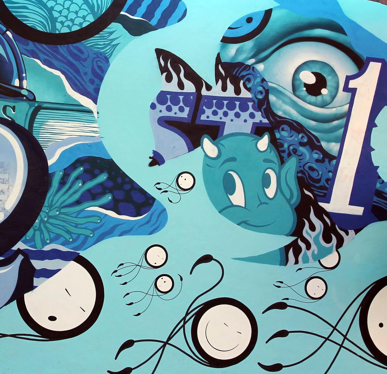 The concept of the bigger fish eating the smaller fish is pretty straightforward and it fits perfectly the Seawalls’ theme of preserving the oceans. Each one is filled with Eaton’s signature patterns and layering while being surround by a bunch of characters from The London Police.