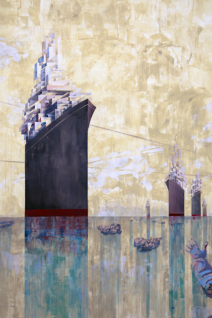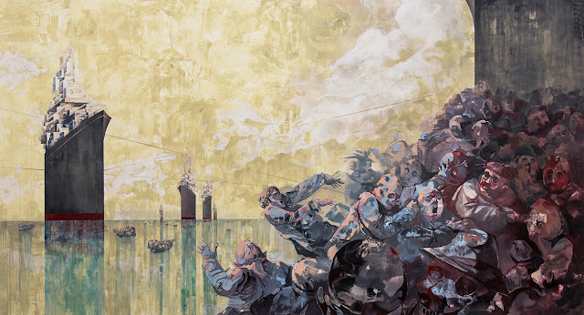 The pair created yet another stunning piece of work which is entitled “Unreachables”. The large artwork shows a group of people trying to reach a group of boats which is the only way for them to exit their current life, however as the title says, the boats are unreachable. A beautiful metaphor.