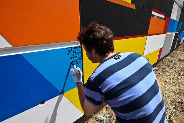 DMV crew members Sowat & Lek recently teamed up to paint their largest mural to date in Evry, France. Measuring impressive 150 feet long x 27 feet high the mural was done in collaboration with the local street art festival.