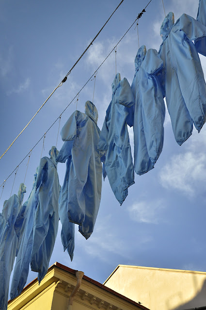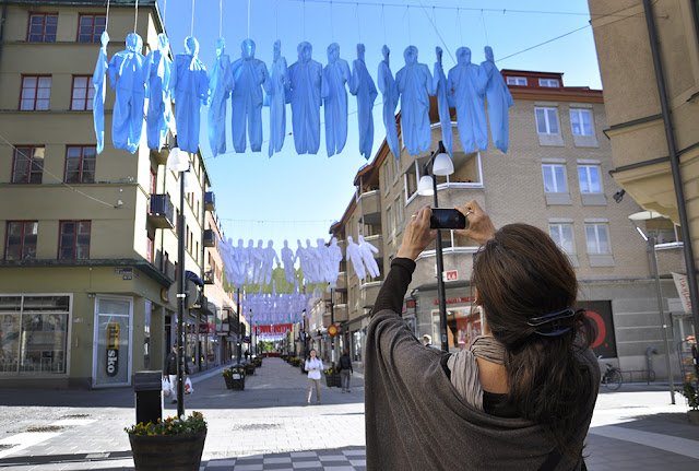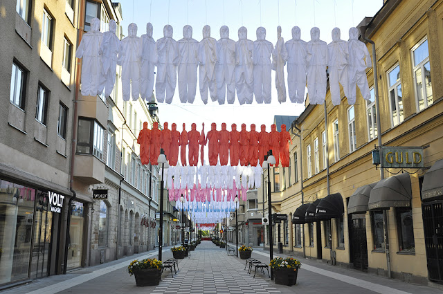 The world’s most renowned dissident artist, Ai Weiwei created the site-specific installation “Think Different (How to hang workers’ uniforms)” for the excellent OpenArt 2015. The 300-meter long work is a vivid comment on the harsh working conditions faced by factory workers in China, coupled with their mundane and repetitive tasks.The artwork consists of 375 workers’ uniforms, hanged in above and along köpmangatan – translated as Merchants’ Street, the most commercial street in the city of Örebro in Sweden. All the uniforms come from Foxconn Technology group, the largest electronics manufacturer in the world and Apple’s main supplier. Suicide, rioting and occupational fatality have often recurred as a result of the inhumane treatment received by the workers.Continue reading for more detailed images on this striking installation and then make sure to drop your two cents down in our comments section.