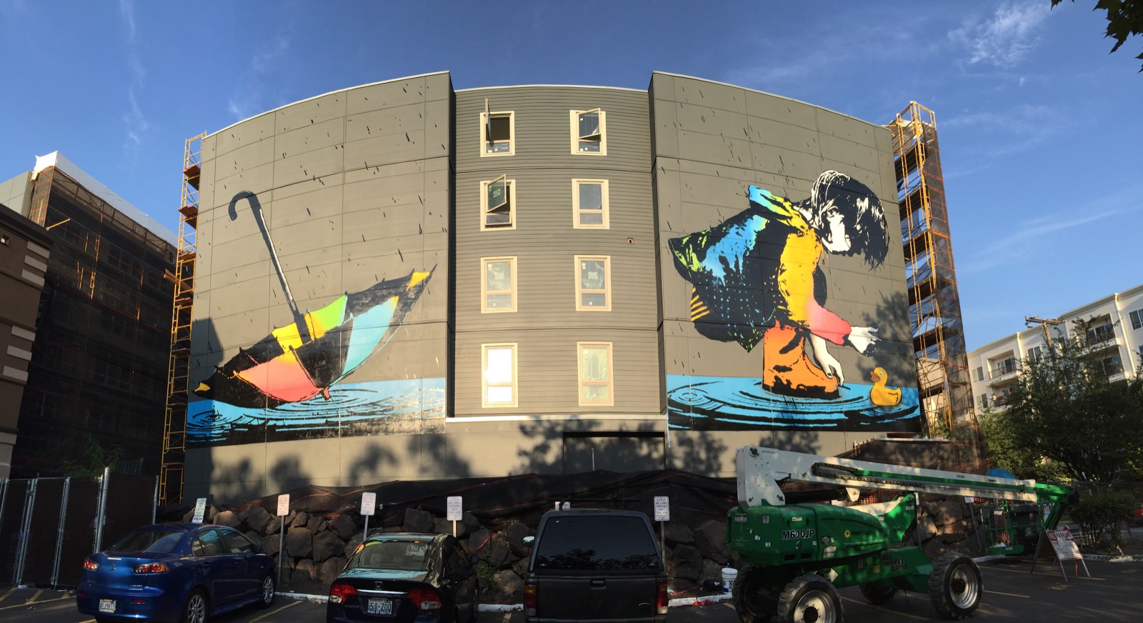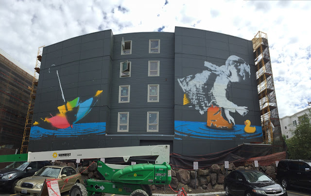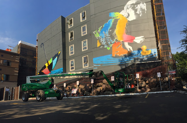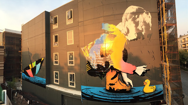 Wallingford a neighborhood in north central Seattle is now home to a massive new piece by BumbleBee which was just finished a few days ago.