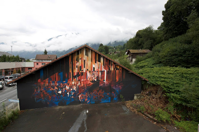 After several days of intense labor, the Polish muralist just wrapped up this fantastic piece which is featuring some of his energy-infused abstract imagery. Mixing realism, abstract elements and futurism, Proch once again delivers a unique artwork which will surely please the local residents.