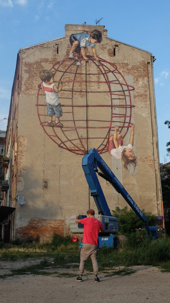 Invited by the good lads from Street Art Doping, the Lithuanian street artist brought to life some of his signature child-based imagery for the locals to enjoy.