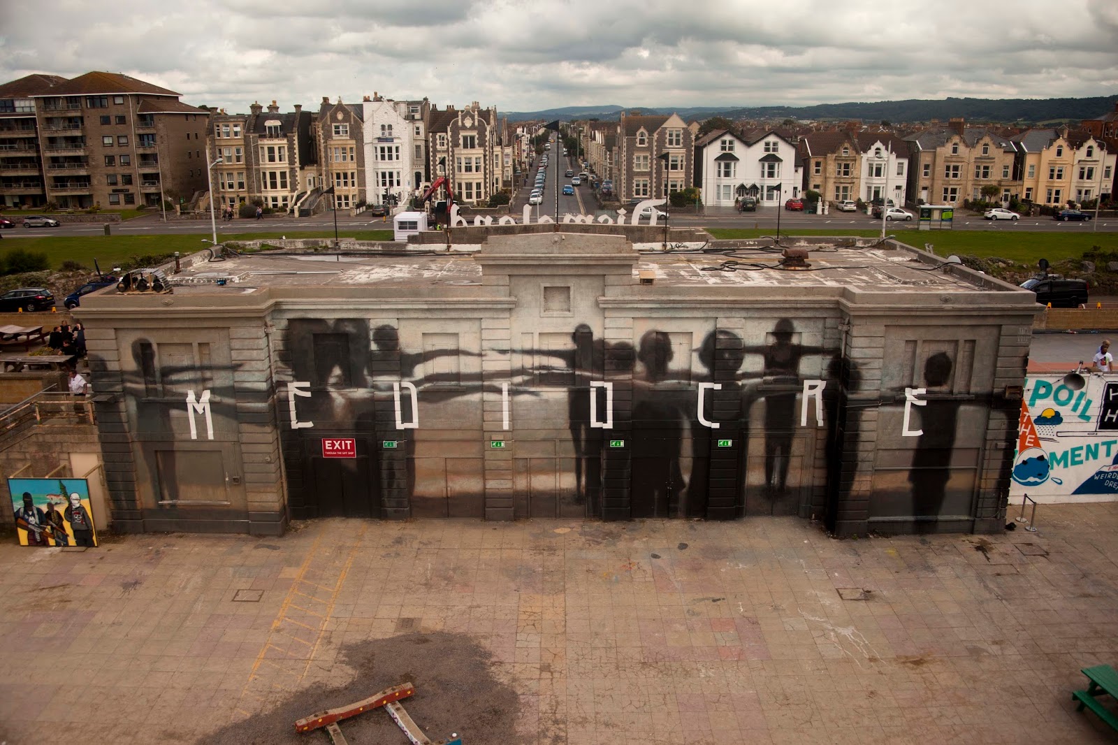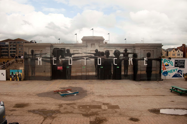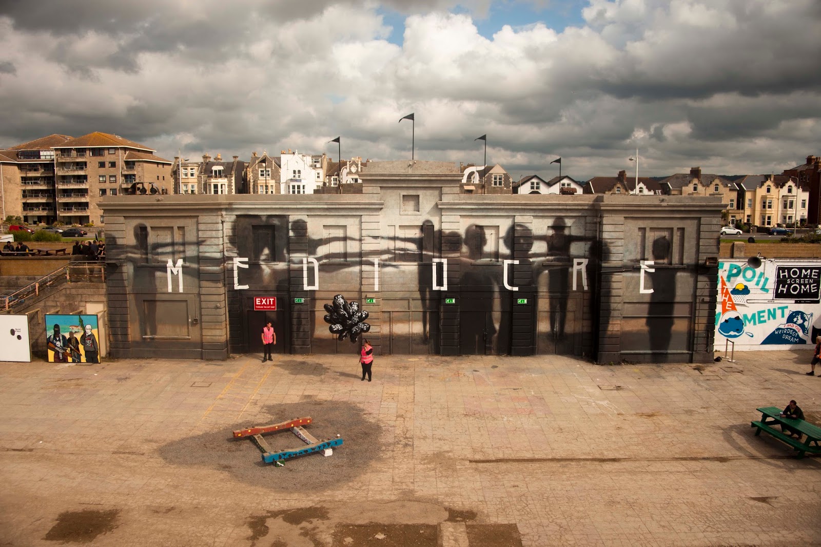 Axel Void recently spent some time in the UK where he was invited by Banksy to paint a new piece in Weston-Super-Mare for the newly opened “Dismaland Bemusement Park”. The mural is entitled “Mediocre” and as usual with Axel Void, it’s an impressive piece of work.
