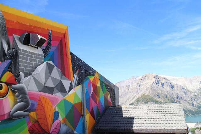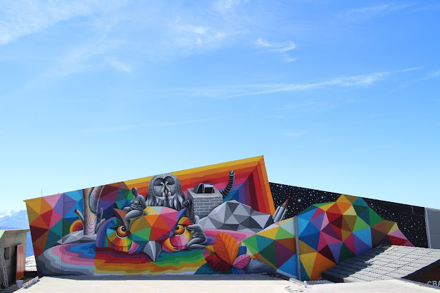 Okuda recently spent few days in Swiss alps, working on this fantastic new piece for the first edition of the unique Vision Art Festival. Being one of the first artist to round up his work, we’re happy to share the photos of this beauty in its full glory.
