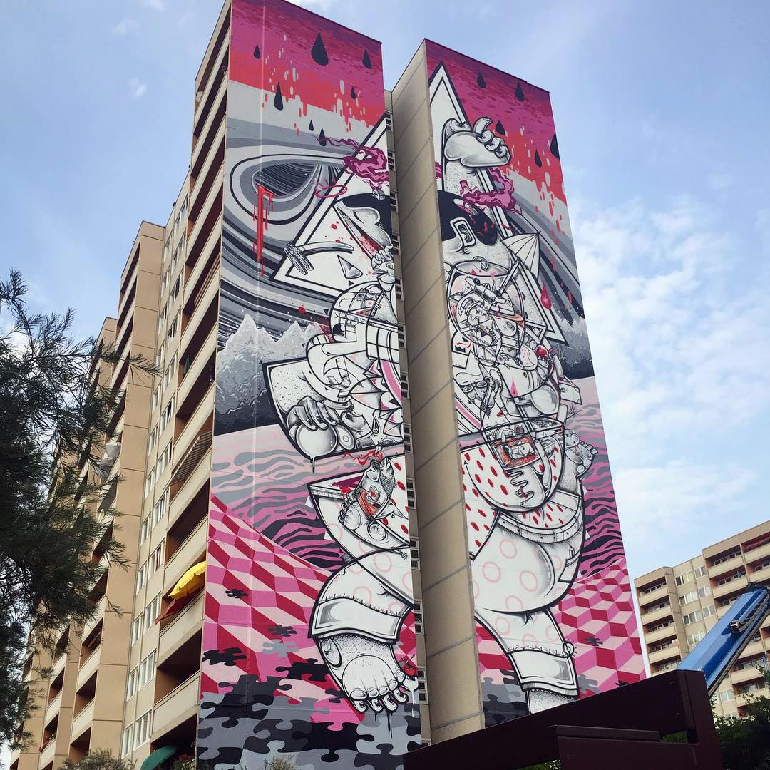 Berlin, Germany is the latest city to welcome an artwork from the twin duo Raoul and Davide Perre, better known as How & Nosm.