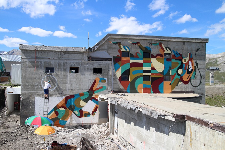 Our good friend Reka was one of the participants of recently finished Vision Art Festival in Switzerland. Australian-born artist got an opportunity to create his work high in the Swiss Alps, and the finished piece looks impressive in the setting it’s been placed in.