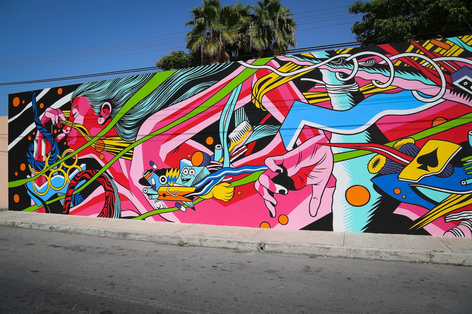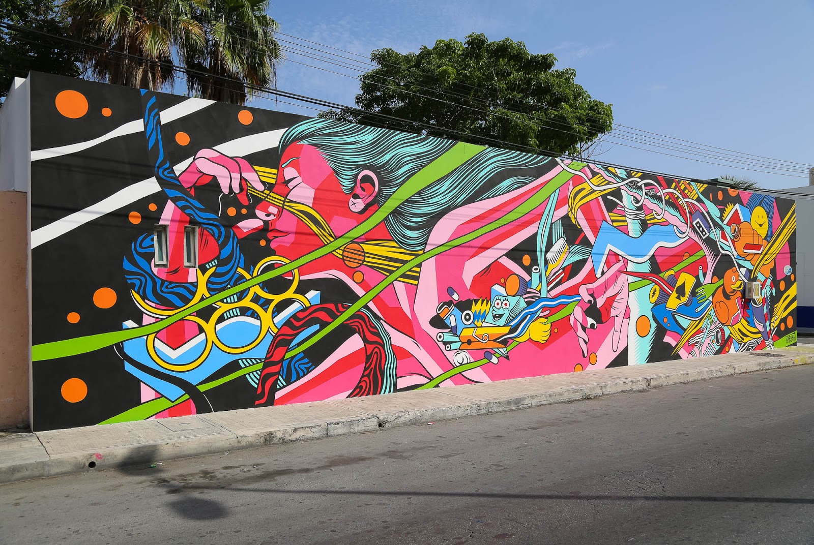 While you discovered some progress images a few days ago, Bicicleta Sem Freio have now completed their latest mural on the streets of Cozumel, Mexico.