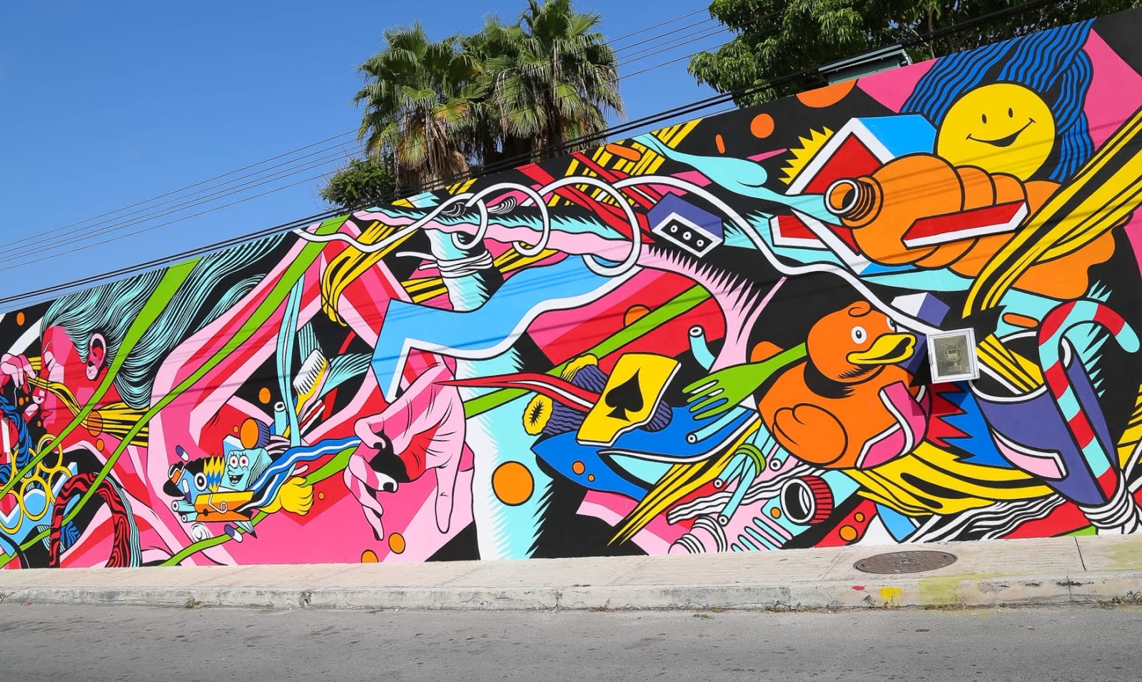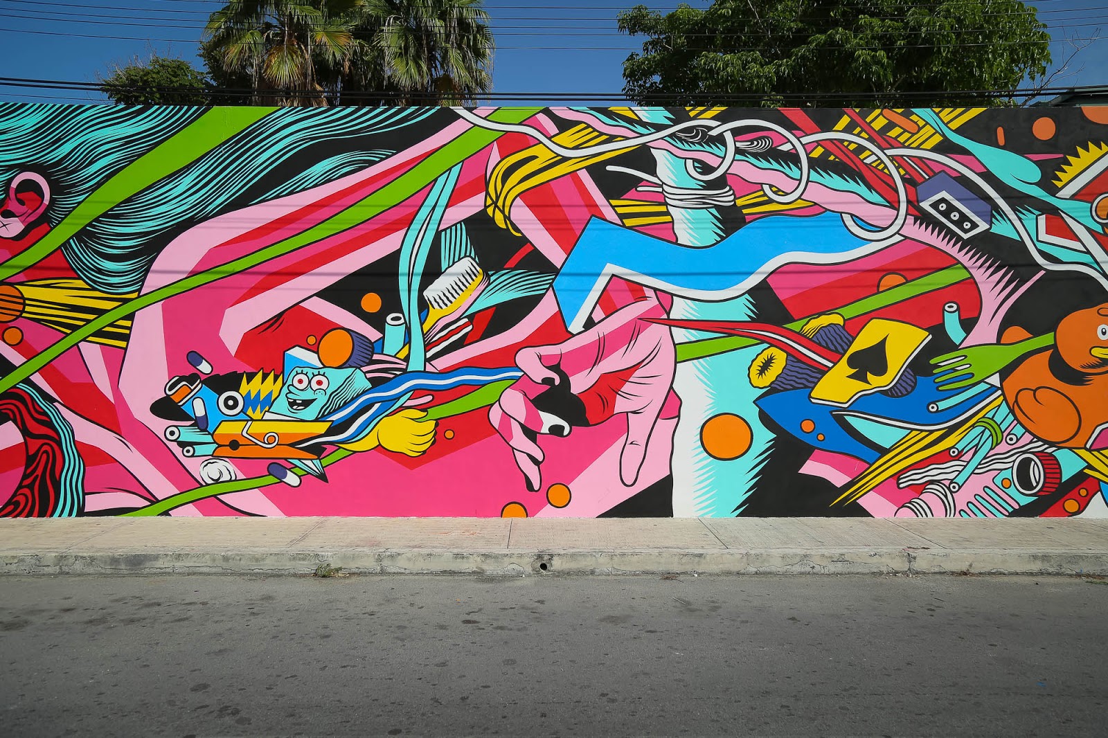 In town with JUSTKIDS for SeaWalls: Murals For Oceans and PangeaSeed, the Brazilian duo created this super vibrant piece which has now become their trademark. The theme was the ocean’s plastic pollution hence why so many smaller objects are appearing on the design.