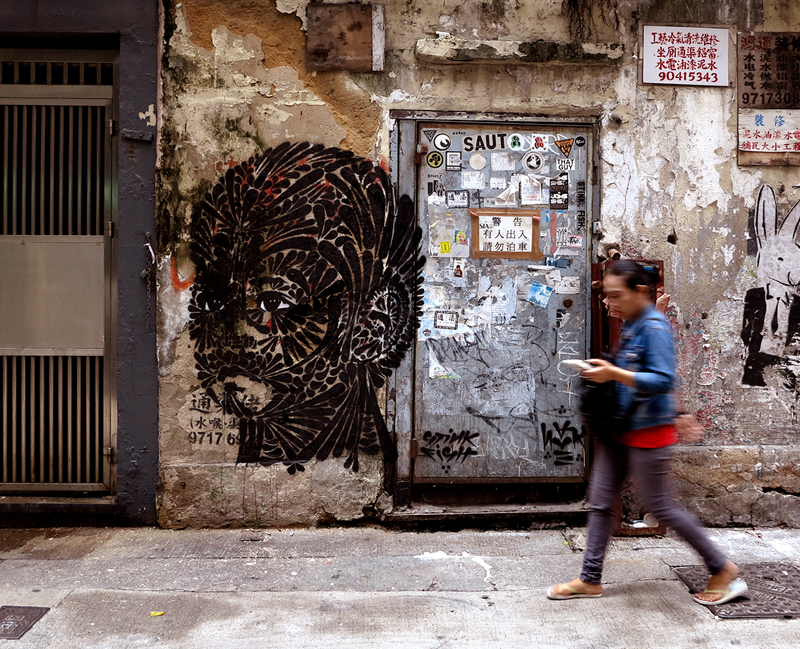 The globe-trotting street artist once again created some of his signature imagery with this series of stenciled-portraits combined with energetic abstractions and patterns. A beautiful addition to Hong-Kong’s landscape by the Colombian muralist.