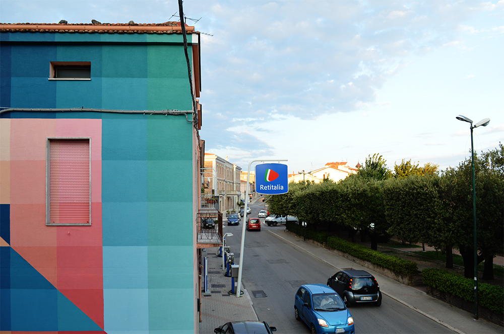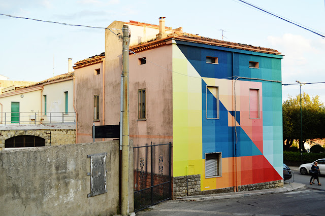 In town for the Premio Antonio Giordano Street Art Festival, the Italian street artist quickly painted this beautiful and colorful abstract artwork which will surely by the local residents.