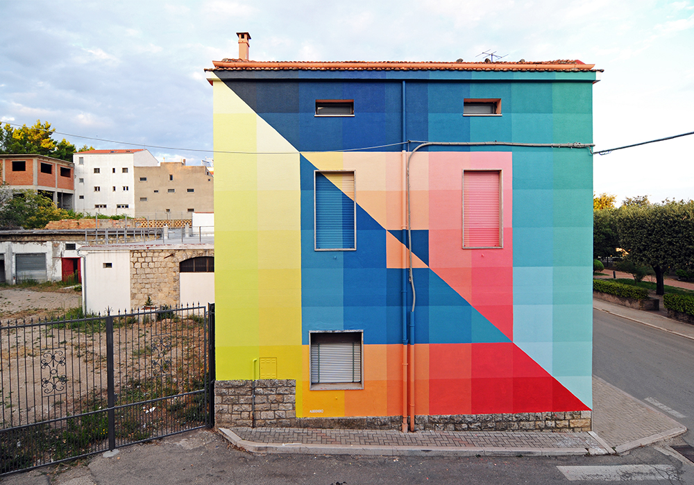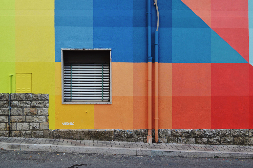 “Two Surfaces And Four Intersections, 88 Tones” is the latest piece by Alberonero which was recently completed somewhere on the streets of Santa Croce di Magliano in Italy.