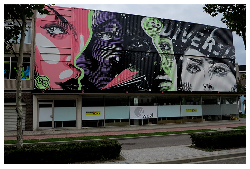 In town for the Heerlen Mural Festival, the prolific street artist quickly worked his way through this beautiful piece which is entitled “DIVERSITEIT” (Diversity in Dutch). The artwork shows a series of portraits painted in different colors ranging from bright pink to black and white.