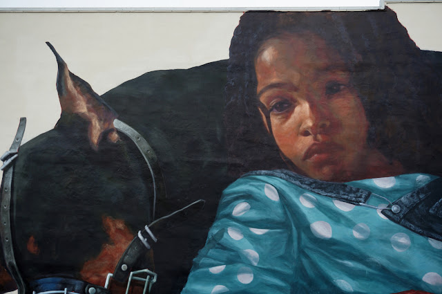 The Miami-based artist created this monumental piece showing a little girl laying down next to her Doberman. A simple but powerful image from the Dominican muralist!
