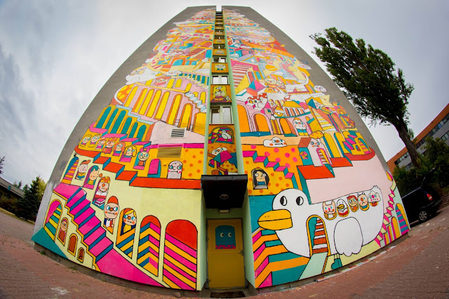 The always excellent Urban Forms Street Art Festival has kicked off on the streets of Lodz in Poland with a brand new piece from Messy Desk.