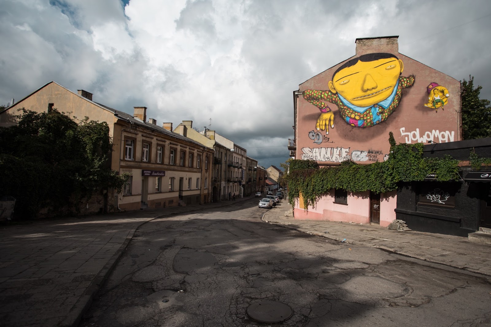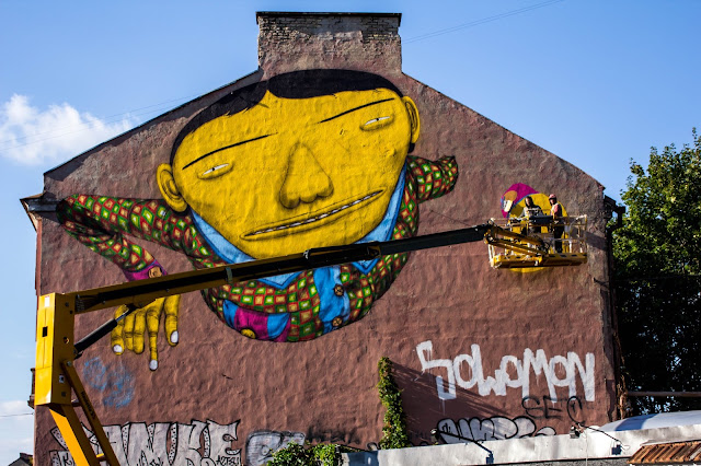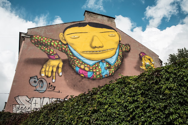 In their mural for the always excellent Vilnius Street Art Festival, the two brothers incorporated a picture of their grandfather sitting in a palm of a colourful giant – a very recognisable style of Os Gemeos with a unique Lithuanian twist.