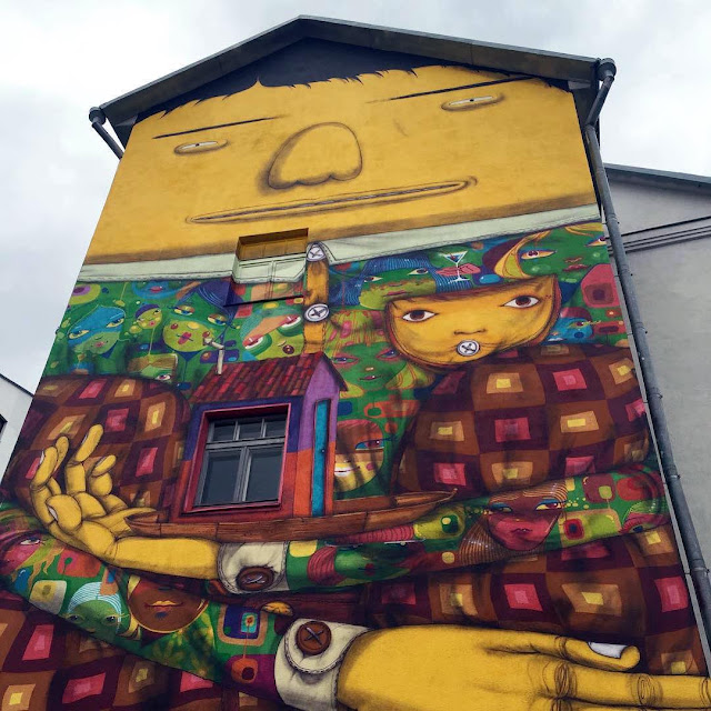 Continue reading for more detailed images and then check back with us soon for more mural updates from Os Gemeos in Eastern Europe.