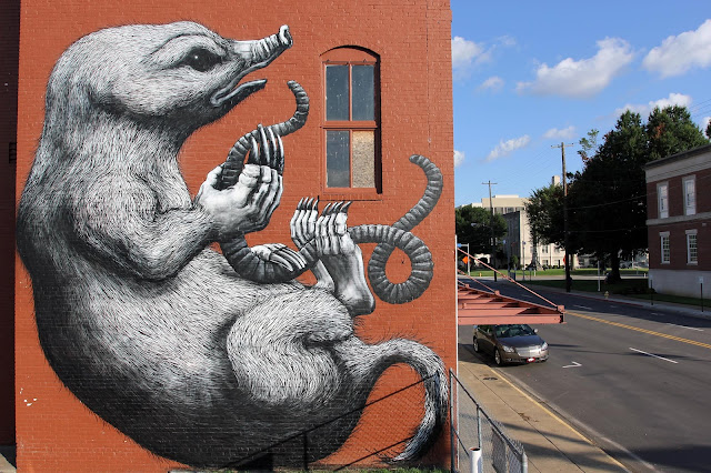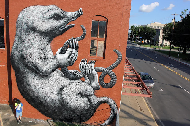 While you discovered some exclusive progress shots a few days ago, ROA has now wrapped up his first piece on the streets of Fort Smith in Arkansas.