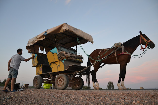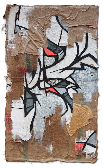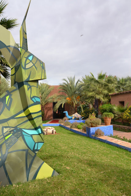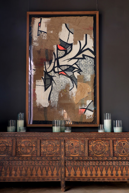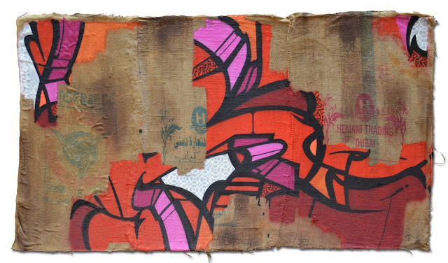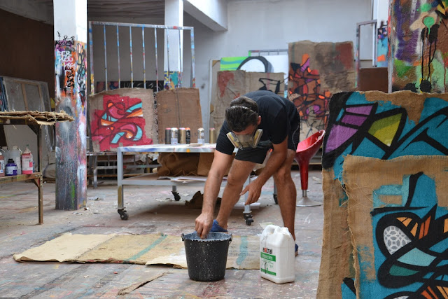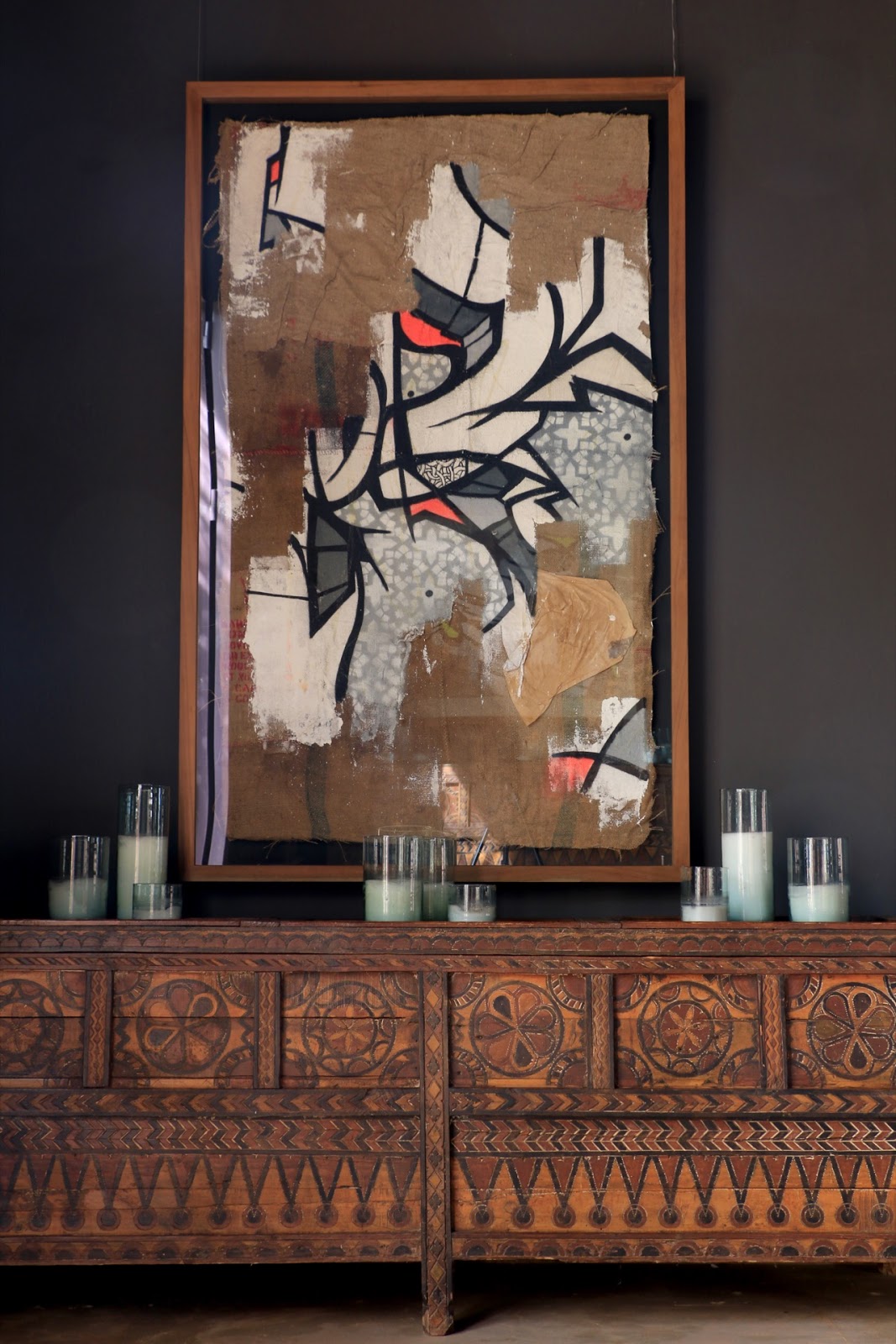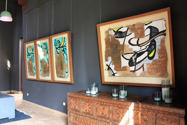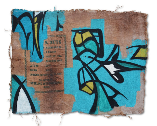 During his Moroccan escapade the artist used raw materials to model his creation, playing with objects like jute bags, tin cans, old papers… He makes colour dance within these limitations.