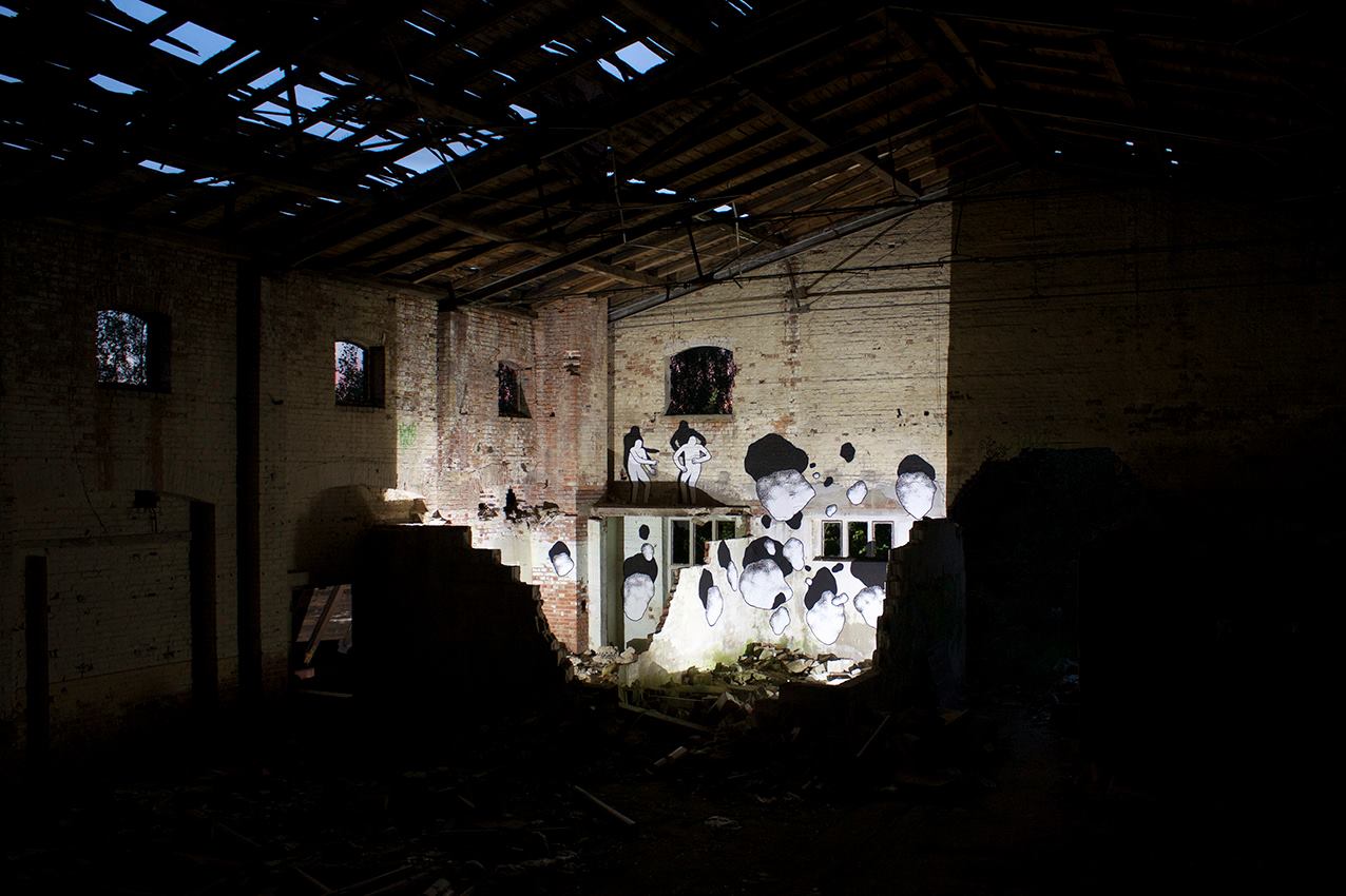 Between taking part in festivals, painting more traditional murals or doing exhibitions, Dutch artist Daan Botlek likes to experiment with new concepts and create installation. Recently he went back to Oranienbaum and created this effective indoor installation.
