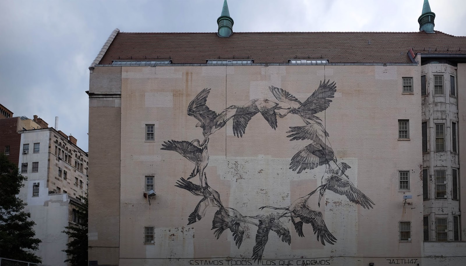 This new piece was painted as part of the monument art NYC project which is focusing on the issue of immigration. ‘estamos todos los que cabemos’ speaks of the migrationary patterns of birds,