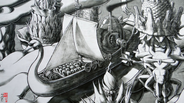 After a few days of hard work, the Spanish painter unveiled a beautiful piece entitled “Memoria Ginesolar”. With this artwork, Liqen painted his homage to the sun which is usually fairly hidden in the northern countries. The sun is turned into a goddess laying down on a cloud while a million different interactions are happening around her.