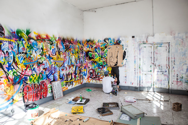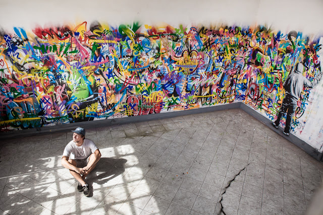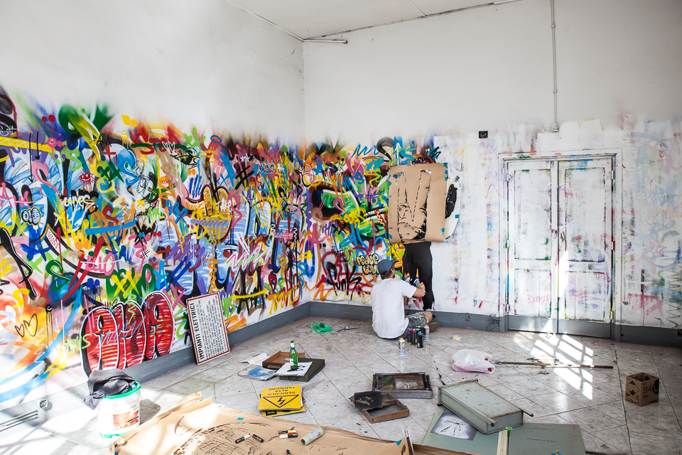 Geared with stencils and a ton of spray paint, the Norwegian artist created this rad “Buff” room depicting the constant fight in between a writer and the buffer. This colorful piece was created as part of the Outdoor Festival.