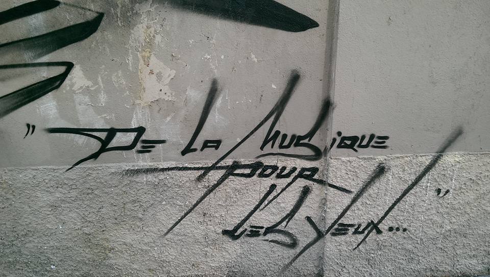 Entitled “Music For The Eyes” and painted with just a few cans of black Spray paint, the French street artist delivered this simple yet super effective eye piece which will surely be enjoyed by the local residents.