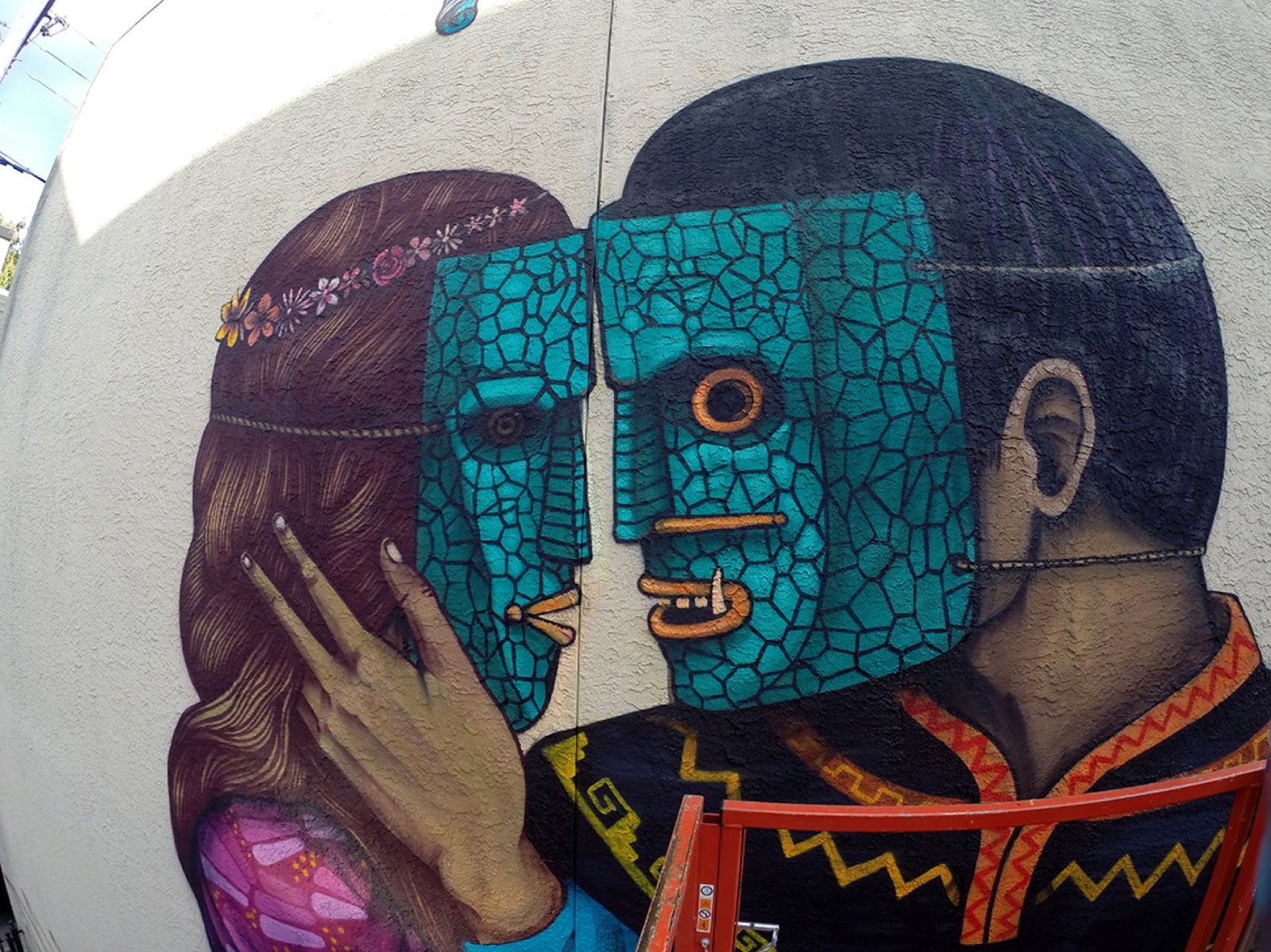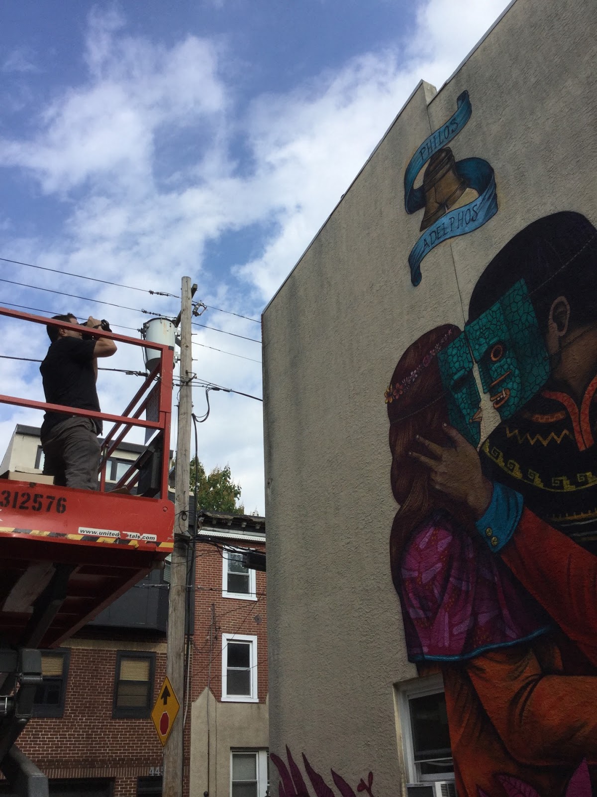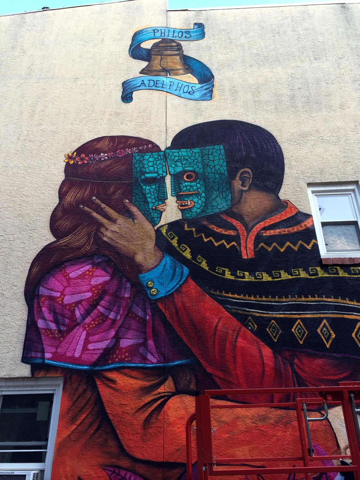 The Mexican artist created this beautiful piece showing the embrace of a couple dressed up with masks and traditional Mexican outfits. The name of the piece is “Philos & Adelphos” (Greek name of Philadelphia). It’s Saner’s version of the city’s symbolism the roots of the beginning and what continues day by day during our modern life.