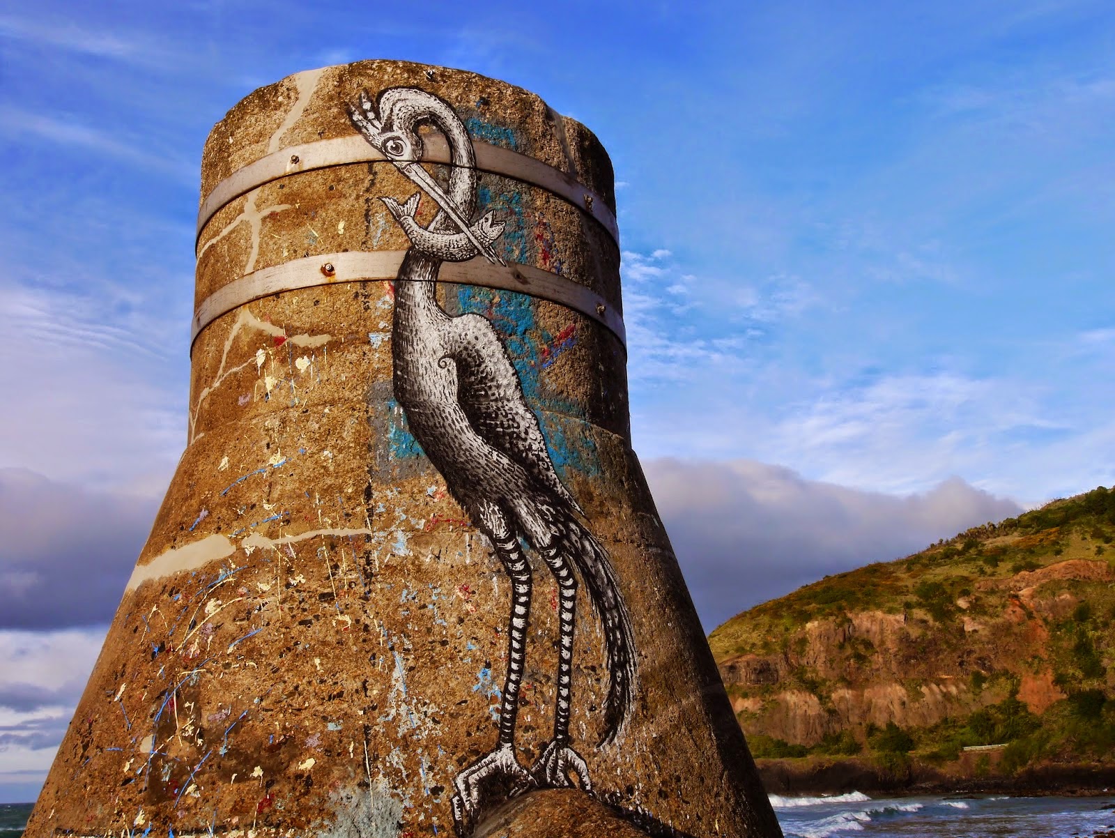 Hula is an NYC-based artist which decided to grab his surfboard, a bunch of acrylic paints, and get as far away from the street as possible!! In equilibrium on his surfboard, the Hawaii-native artist brought to life a series of beautiful portraits which perfectly integrates with the ocean.