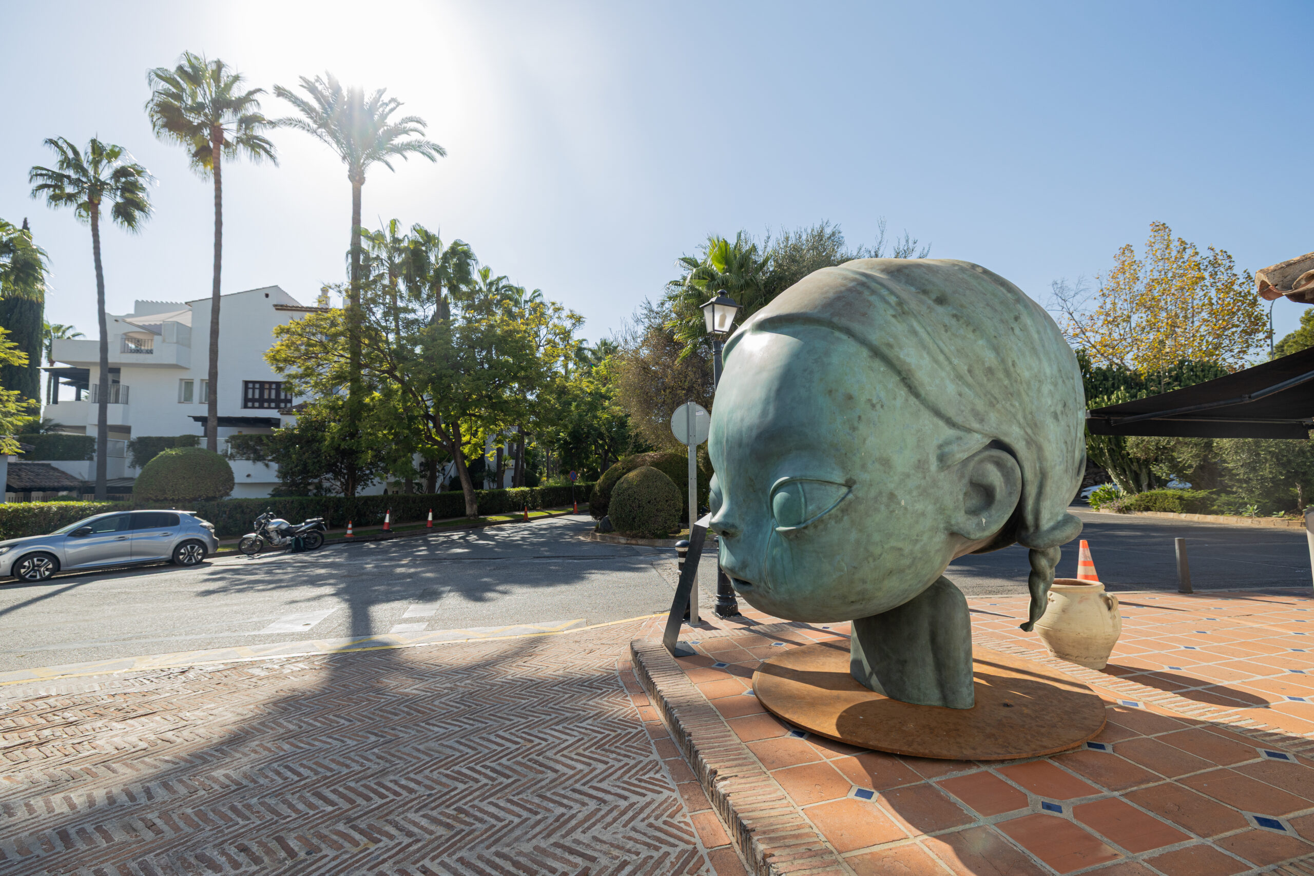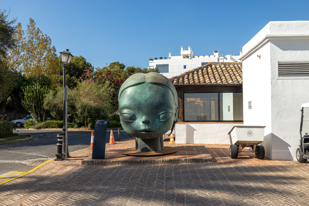 Installed within the Mediterranean gardens of Puente Romano, Nalakala blurs the line between public art and contemporary mythology. Though born from the studio, its monumental presence in an open, accessible setting transforms the piece into a living dialogue between fine art, nature, and the public.