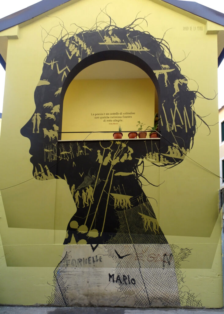 Internationally acclaimed muralist David de la Mano has unveiled “Sea Skin,” a striking new mural in the heart of Salerno’s old town, commissioned by the Alfonso Gatto Foundation. Known for his monochromatic style and symbolic human figures, de la Mano once again blurs the boundaries between the individual and the collective, creating a piece that resonates deeply with the spirit of the city and its relationship to the sea.