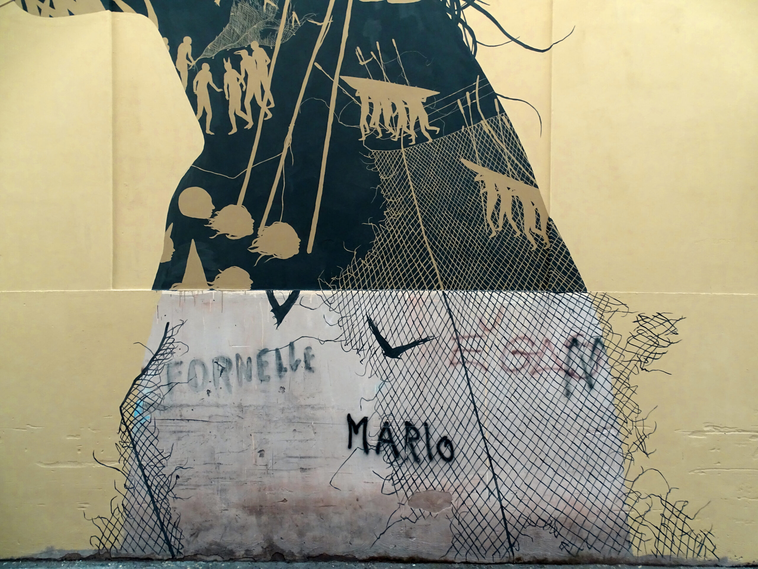 The Alfonso Gatto Foundation, which has long promoted art as a vessel for poetry and urban renewal, commissioned Sea Skin as part of its ongoing effort to bring literary and visual culture into Salerno’s public spaces. The mural aligns seamlessly with this mission, as its silent narrative feels almost lyrical, a poem painted in waves and silhouettes.
