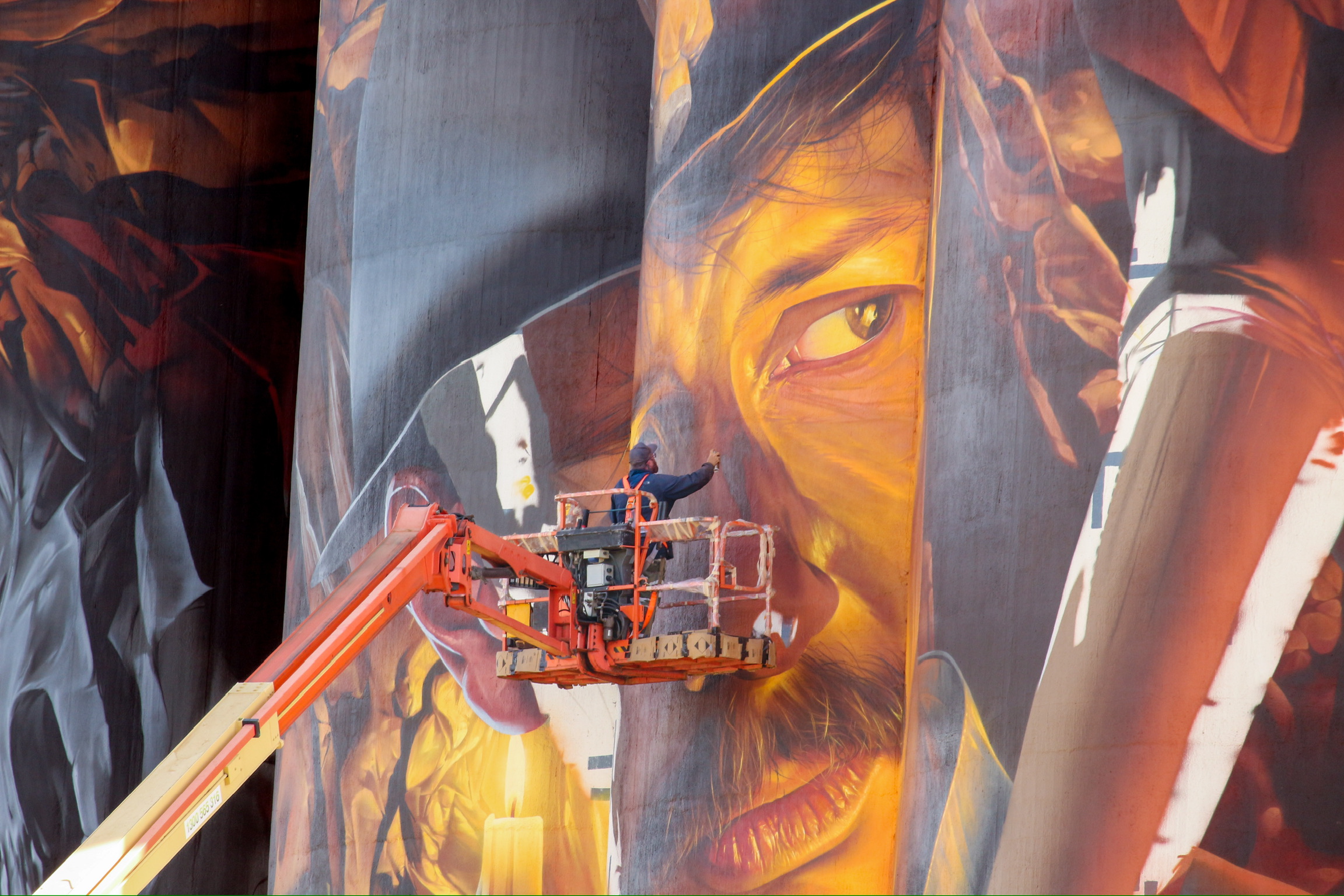 Taking more than 35 days and over 300 litres of Dulux Weathershield, Smug’s mural recreates the interior of a 19th-century copper mine, offering viewers a glimpse into the grit and resilience of miners from the 1840s.