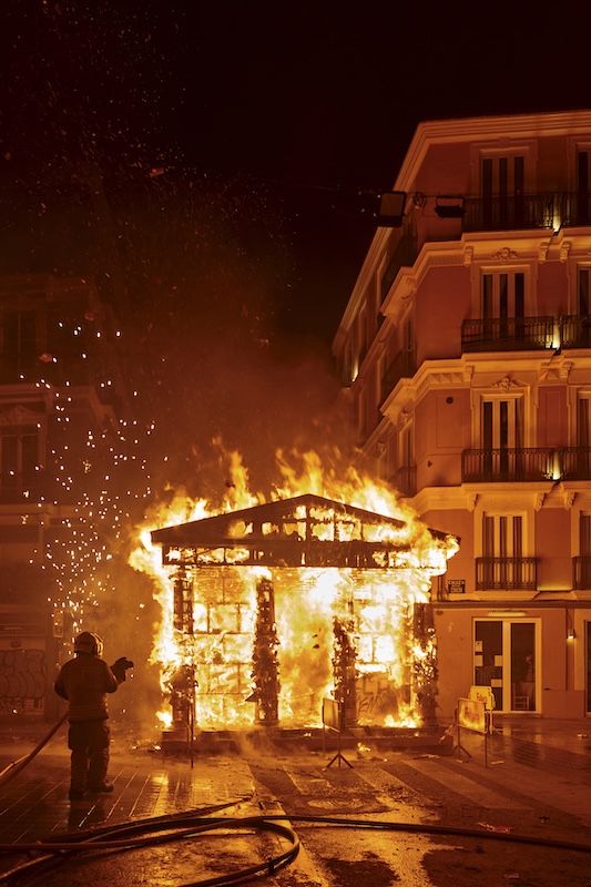VALENCIA, Spain (March 20, 2026) — Spanish street art duo PichiAvo took Valencia’s Fallas festival by storm with Per ofrenar (“To Offer”), a monumental installation that existed for just a few days before being consumed by fire during the festival’s closing ritual. Commissioned by the Borrull-Socors falla and featured in the Experimental Fallas category, the project highlighted the most conceptual and artistic proposals within the centuries-old celebration.