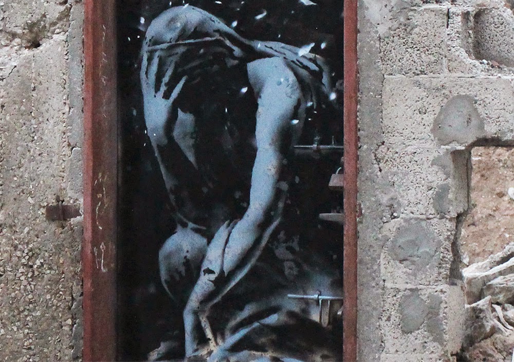 After teasing us with a single shot on Instagram earlier this morning (GMT time), Banksy finally revealed the location of the first piece which is Gaza in Palestine. Inspired by a sculpture of Niobe, a Greek mythological figure, the first piece is entitled “Bomb Damage” and obviously with Banksy, the placement is just on point. Niobe’s children were killed out of spite and then in her mourning she turned into a stone that was constantly weeping.
